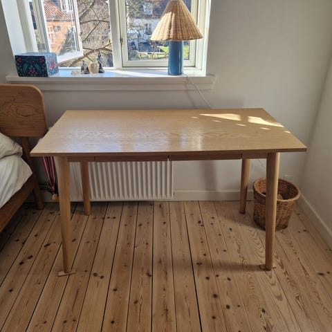 Lækkert dansk produceret skrivebord sort laminat og olieret egetræsben