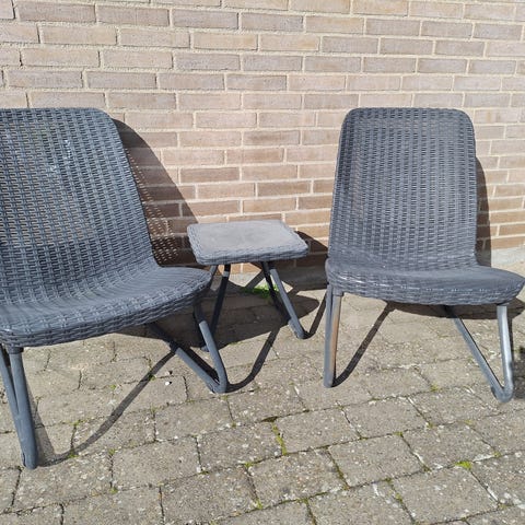 Havestole og bord i jern/træ. Bordet uden plade kun stel . Afhentes gratis i Vig