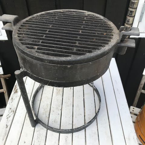 Funktion: Designet til at grille over åben ild, typisk ved at blive placeret på jorden eller et underlag.