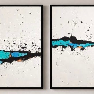 Abstrakt / Spray maleri på lærred lagt på sort -ramme.