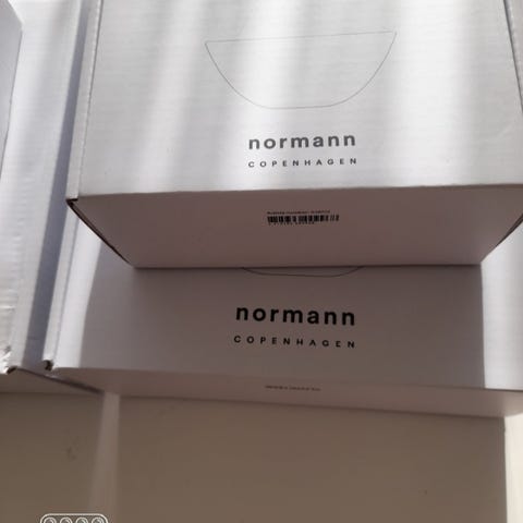9 stk Normann Copenhagen glas i klart glas. Sæt af runde drikkeglas i gennemsigtigt glas, velegnet til servering af vand, juice eller andre kolde drikke i køkken eller spisestue.