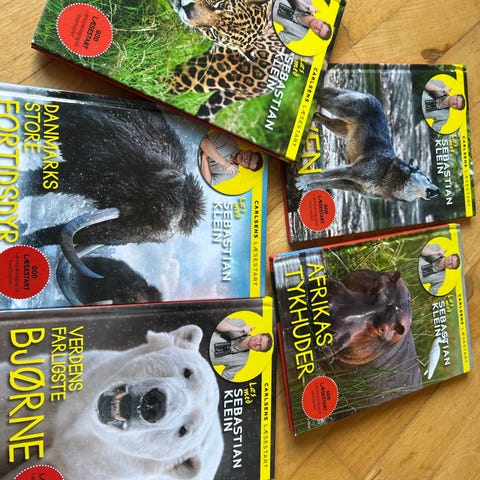 Jeg sælger min samling af Sebastian Klein verdens 100 dyr bøger da jeg ikke får læst dem mere og håber at en anden kan få lige så stor glæde af dem som vi har.