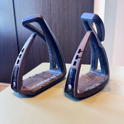 Freejump stigebøjler i sort størrelse junior, 11 cm. Passer op til størrelse 40 i sko.