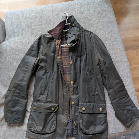 Den har lynlås- og knaplukning, fløjlkrave, stormlukning ved halsen og fire lommer foran (to med knaplukning og to åbne).