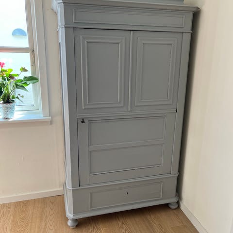 Flot afsyret karlekammerskab med to skuffer. Nem at skille ad da den er samlet uden skruer se billede 2 og 3.