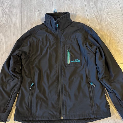 Jakken er sort og har gennemgående lynlås foran. Den er udstyret med lynlåslommer på bryst og sider. Materialet er et softshell-stof, som typisk er velegnet til overgangsjakke eller sport.