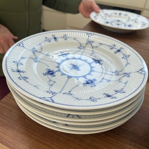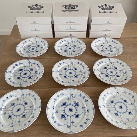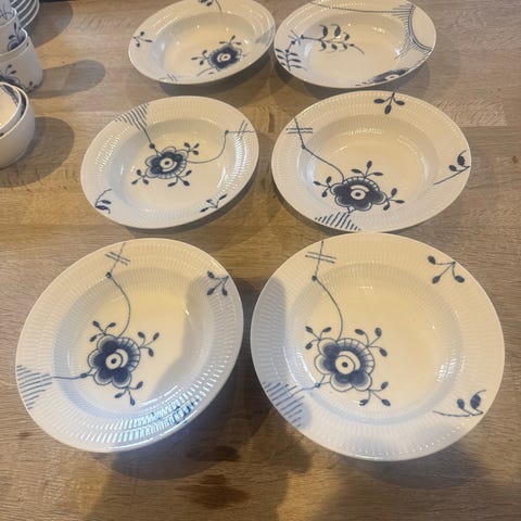 Royal Copenhagen Musselmalet Riflet dybe tallerkener porcelæn blå-hvid