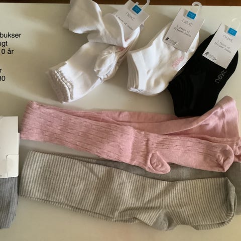 De fleste er str 31-36, mærket Next, sorte og hvide er korte trænersokker.