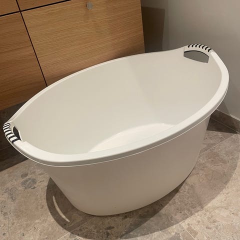 Plast badekar i hvid. Ovalt kar med glat inderside og afrundede kanter. Velegnet som fritstående badekar til baby eller mindre barn. Fremstillet i hård plast, let at rengøre og flytte efter behov.
