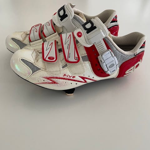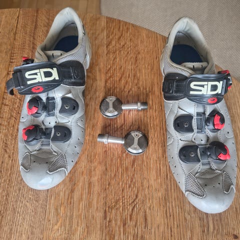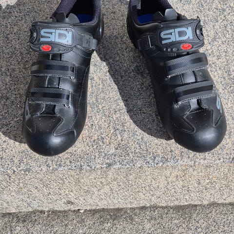 Sidi cykelsko i størrelse 42. Skoene er sorte med justerbar spænde- og drejelukning på vristen. Velegnet som cykelsko til brug med klikpedaler. Skoene har ventilationshuller i snuden og forstærket hælområde. Leveres som et par i str. 42.