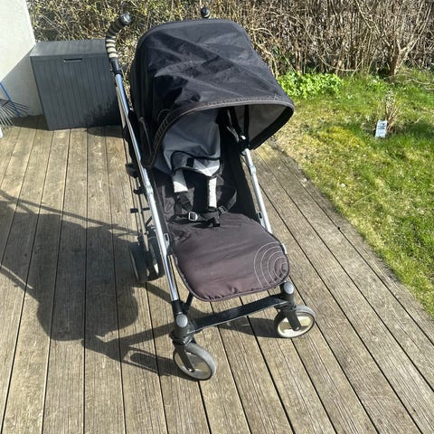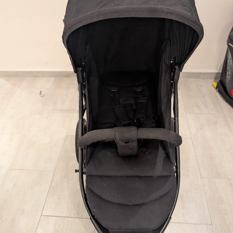 Hauck klapvogn i brun farve. Vognen har justerbart sæde med sele, frontbøjle og kaleche. Der er varekurv under sædet til opbevaring. Håndtaget er i matchende brun farve, og vognen har tre hjul med drejeligt forhjul for nem manøvrering. Egnet til transport af ét barn.