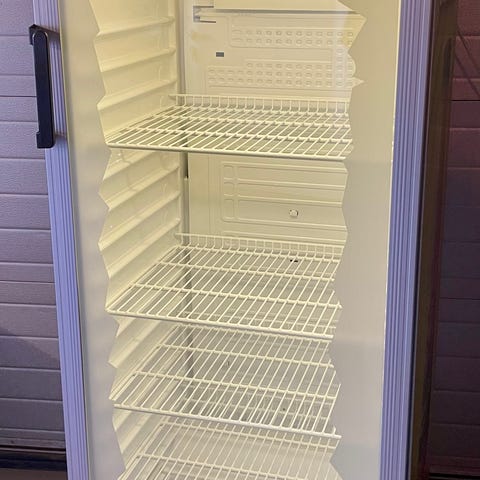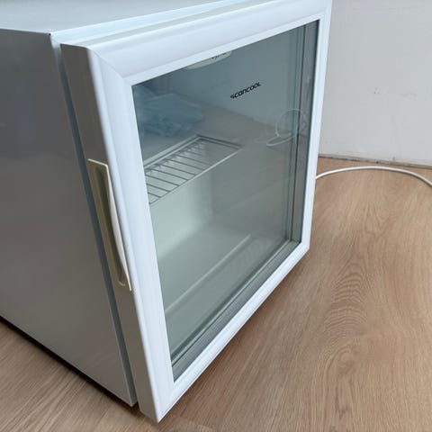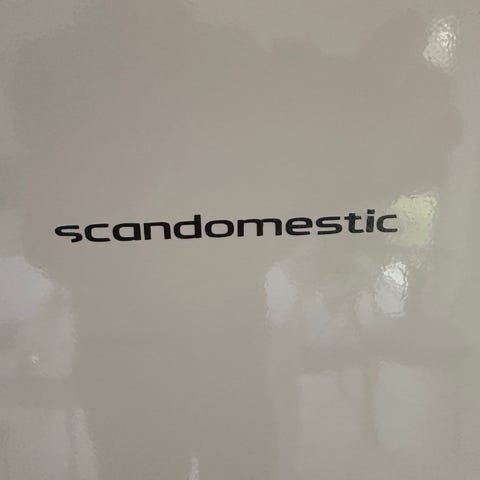 Trænger til rengøring og der sidder to klistermærker på glaslågen.