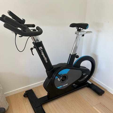 PEAK Fitness Spinningcykel i sort med blå detaljer. Cyklen har blandt andet justerbart sæde og styr. Mange justeringsmuligheder. Udstyret med "fast" modstandshjul, der reguleres via drejeknap med stop-funktion. Pedalerne har stropper for bedre fodfæste. Klikpedaler med 2 forskellige fittings medfølger. Fra røg- og dyrefrit hjem.