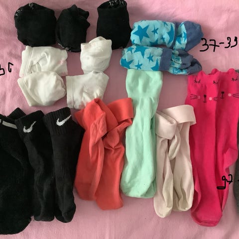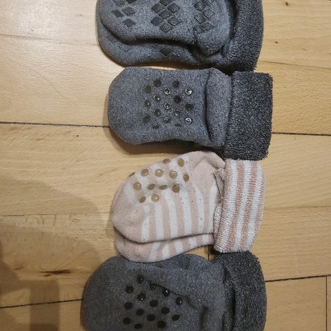Disse sokker kan følge med gratis ved køb af børnetøj.
