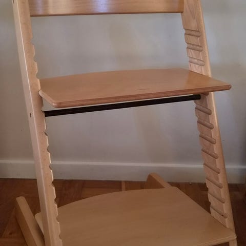 2 stk Stokke højstol i træ med naturfarvet finish. Højstolen har justerbar siddeplade og fodplade, som kan tilpasses barnets højde. Egnet som spise- og siddeplads til børn ved bordet. Klassisk design i massivt træ, der giver stabilitet og støtte til barnet under måltider og aktiviteter ved bordet.