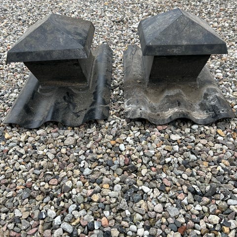 Tagrygning med udluftning i beton i grå farve. Elementet er formet som en rygsten med integreret ventilationshus og pyramideformet top. Velegnet til montering på tagryg for at sikre udluftning af tagkonstruktionen på tage med betontagsten eller lignende materialer. Kan bruges som erstatning eller supplement til eksisterende tagventilation.