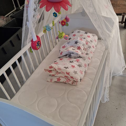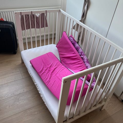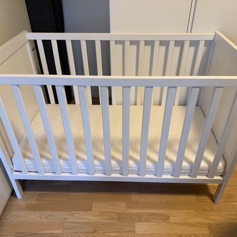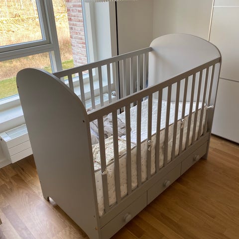 Sød IKEA tremmeseng udvendige mål 60×115 cm. Uden madras.