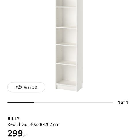 4 Billy-reoler samt cd-reol kan afhentes . Som udgangspunkt vil vi gerne af med det hele til samme 'køber'