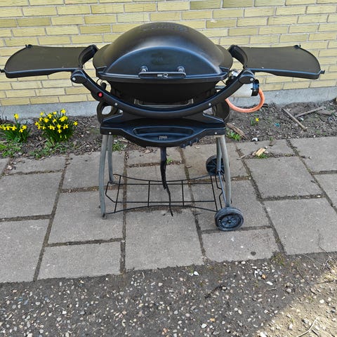 God brugt Q1200 Weber grill inkl stativ, overdækning og lille gas flaske. Stået overdækket ved brug og i skur om vinteren. Lige gjort rent og sat ny gas flaske på. Ved optænding var der ca 1/4 del af røret rundt der ikke kom flammer i - måske pga rengøring? Sidste år virkede den.