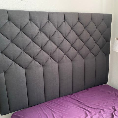 Ilva sengegavl i lyst stof. Rektangulær model, polstret og betrukket med ensfarvet tekstil. Velegnet som gavl til seng i soveværelse eller gæsteværelse. Kan placeres direkte mod væg bag seng. Nærmere mål og montering afhænger af den konkrete model og bør kontrolleres ved interesse.