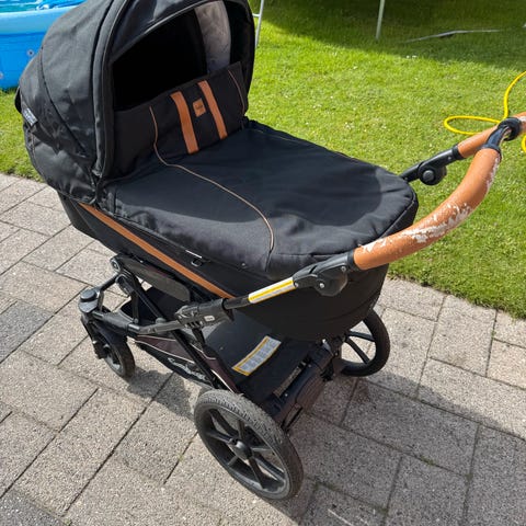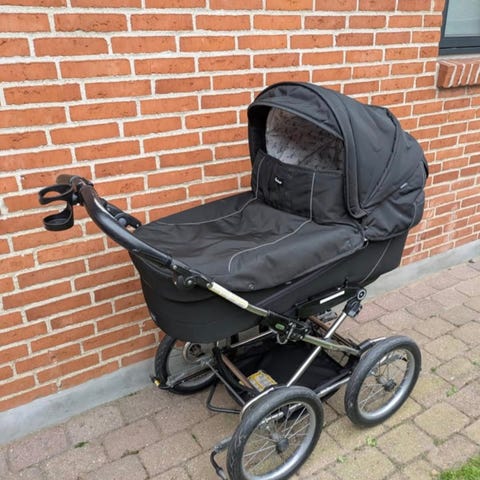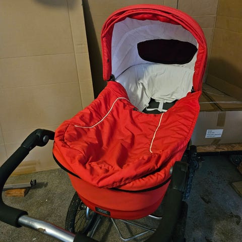 Madras og sele medfølger. Samt fluenet og regnslag. Liggemål 98cm.