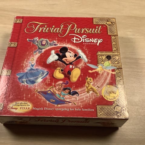 Trivial Pursuit Disney‑udgaver, mangler lidt oste brikker, et Monopoly Disney‑brætspil samt Heroes & Villains Chess Set Disney udgave, med tilhørende figurer.