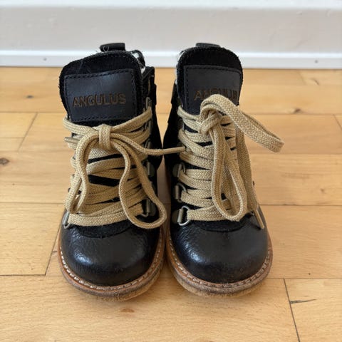 Virkelig flotte vinterstøvler fra ANGULUS sælges. Dejlig varme med foer overalt inden i. Lynes i siden, så nemt for barnet at få på.