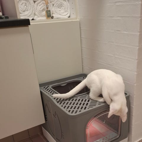 4 hvide kattetrin til væg sælges. Aldrig brugt. 100 kr. for alle 4.