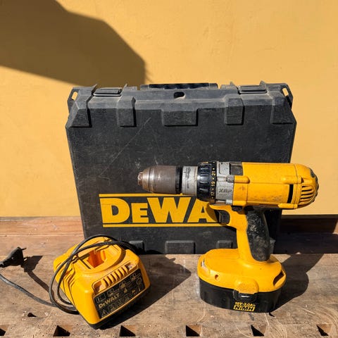 DeWalt XR 18V akku boremaskine. Sættet inkluderer boremaskine, 2x 18V XR Li-Ion batteri, oplader og transportkuffert. Egnet til boring og skrueopgaver i træ, prof model med metal hoved.