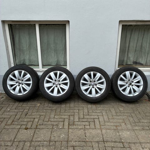 Brugt, men i god stand. Fælgene fremstår flotte, og dækkene har ca. 3–4 mm mønster tilbage.