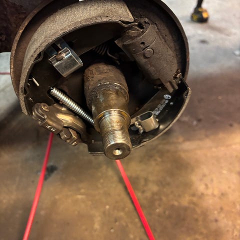 men den skal ihvertfald have efterset bremser inden syn, den er med påløbsbremse, og den er lavet med relativt kraftige vanger og sidefjæle iforhold til dem man ser fra Bauhaus og deslige, bunden har desuden set bedre dage men uden synlige huller, den er dog ved at være mør flere steder, der sidder umiddelbart 4 pæne dæk på dog taber det ene luft, der sidder desuden velfungerende LED lygter på med 7 polet stik