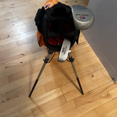 Rigtig godt golfsæt til den lille der skal prøve kræfter med golf. Sættet giver mulighed for at prøve lidt af det hele, alt fra de lange slag med køllen, præcisions slag med jernet og øve på green med putteren.