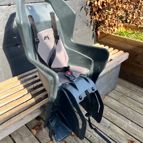 Polisport Koolah cykelstol bagagebærer montering i grå sælges. Beslaget er slidt og mangler en skrue, men selve stolen (som har stået inde, når ikke i brug) er i rigtig god stand. Et nyt beslag kan købes fx hos Thansen eller fikses med et 1-2 nye skruer.