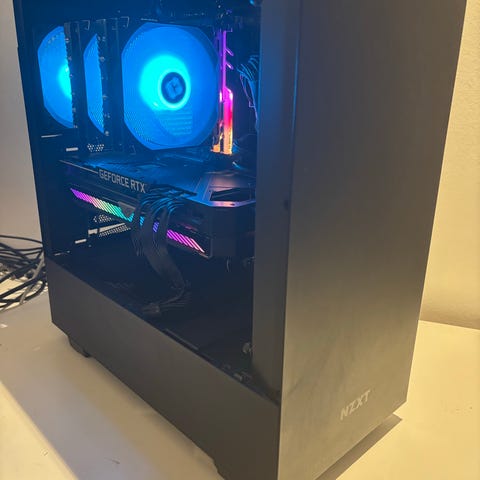 Kraftfuld stationær gaming pc sælges. Den kan køre alle spil i høj grafik uden problmer. Har primært selv spillet Fortnite og CS2 på den med 400-500 fps. Kan afhentes i Vejle eller sendes på køberens bekostning.