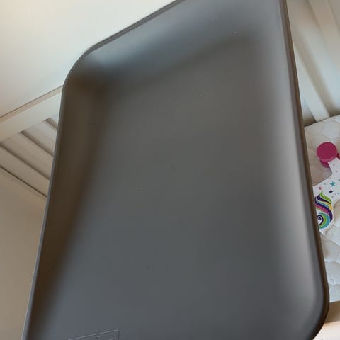 Han har aldrig ligget direkte på puslepuden – vi har altid brugt et tykt håndklæde ovenpå, så puden er helt ren og uden pletter fra fx tis eller gylp 😊