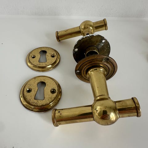 Klassisk dørhåndtag, T-dørgreb i massiv messing til indvendige døre