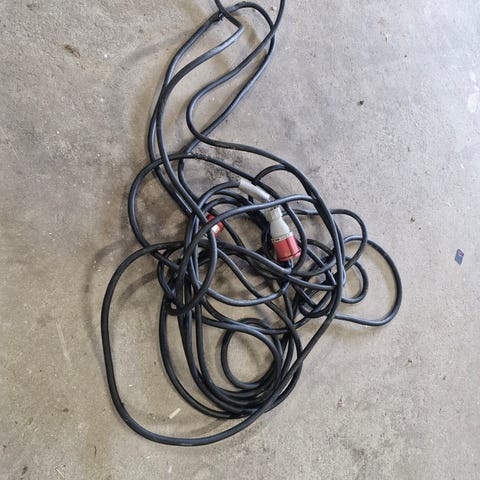 H07 RN-F forlængerledning med CEE stik i sort gummikabel. Kablet er mærket H07 RN-F og er egnet til hårdt brug. Udstyret med røde CEE stik i begge ender til trefaset strømtilslutning. Velegnet til midlertidige installationer, f.eks. byggeplads, værksted eller udendørs brug, hvor der kræves robust gummikabel og CEE tilslutning.