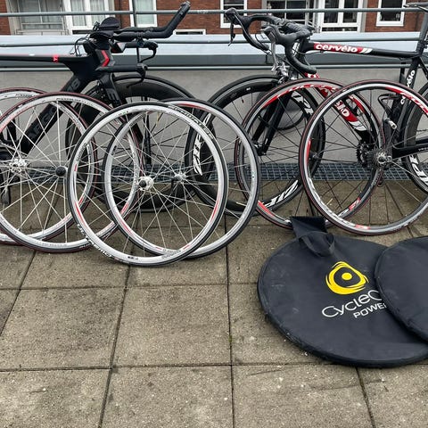 Udover alt det udstyr, der sidder på cyklen, så medfølger alt det, der ses på sidste billede også - andre extensions, Wattshop monobar armrests, SRM-holder, oplader, ekstra/andre bremsegreb, ekstra skifteknapper, en masse dimser, så man kan opsætte cyklen/cockpittet helt, som man vil have det, samt mange andre ting.