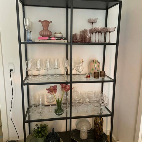 Reol med glas hylder