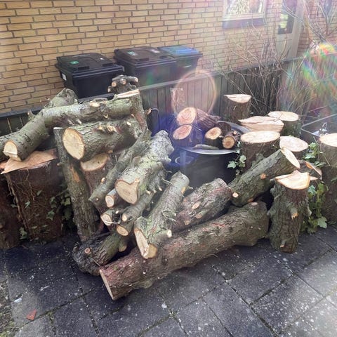 Nyfældet træ sælges på palle. 1.2x0.8x1.2 meter. Det meste er skåret på 30 cm. Har ca 8 m3. Pris pr. palle
