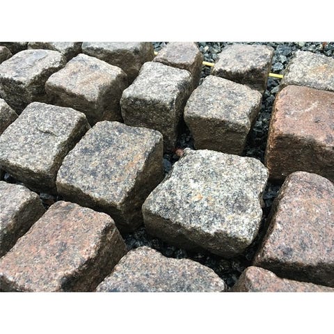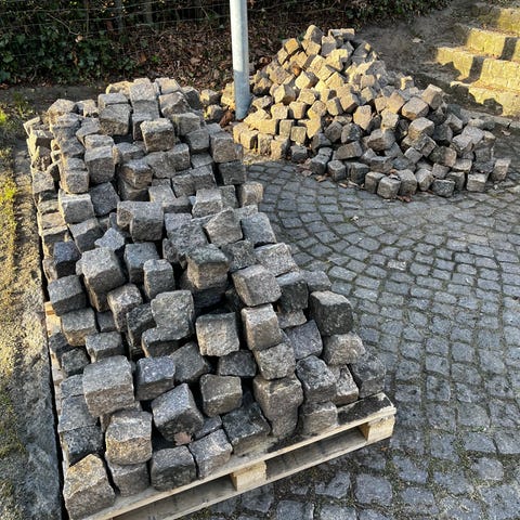 Brosten og natursten egner sig til udendørs belægning, eksempelvis gangstier, indkørsler eller kanter omkring bede. De viste brosten er mindre, kvadratiske sten, mens naturstenene er større, afrundede marksten i blandede størrelser. Stenene kan anvendes samlet eller hver for sig alt efter ønsket udtryk og funktion i haven eller på udearealer.