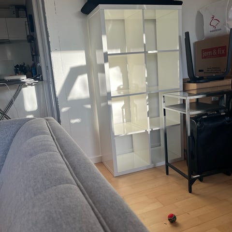 IKEA reol i hvid med målene ca. 193 x 60 x 40 cm. Reolen har flere åbne hylder og egner sig til opbevaring af bøger, mapper eller andre genstande i stue, kontor eller værelse. Designet er enkelt og funktionelt med lige sider og justerbare hylder. Oplysninger om modelnavn og materiale er ikke angivet.