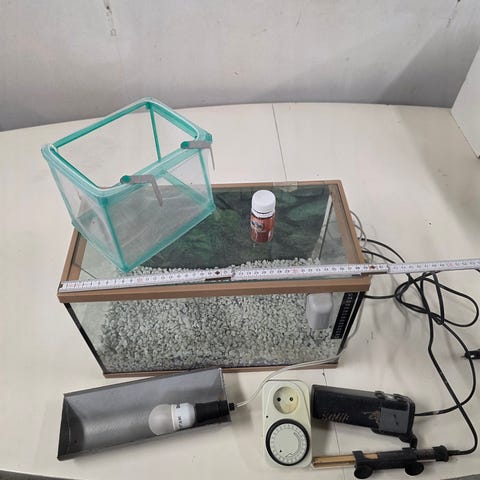 Akvarium med låg og dekoration