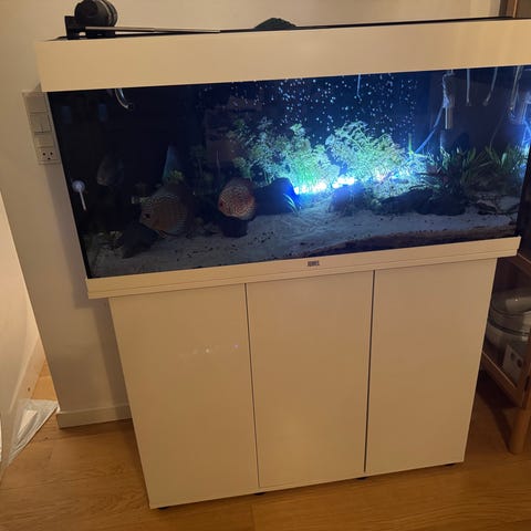 Juwel Rio 180 ltr. akvarium. Hvid med LED-lys og porsa stel