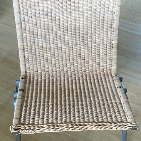 2 stk. flotte Poul Kjærholm loungestole fra Fritz Hansen, 1982. Fletten på begge stole er intakt - er begge blevet repareret hos Endelave Flet i 2020 (kvittering haves). Lidt rust på benene. Prisen er for dem begge - sælges helst samlet.