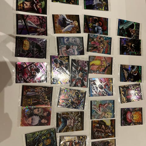 Samling af kort med motiver fra One Piece og. One Piece-kortene viser forskellige figurer fra serien, og er Egnet til samlere eller som bytte og de kommer med sleeves og vi sender ikke