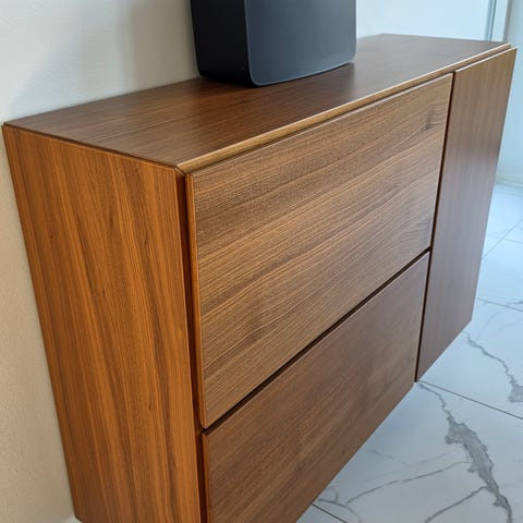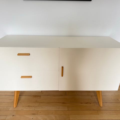 I god stand, men der er skåret hul bagpå til ledninger da vi havde anlæg i skænken.