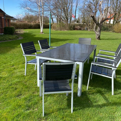 Havesæt med 6 stk stole nyt og ubrugt. Det er inklusiv hynde og er i hvidolieret akacie træ pris 3800kr