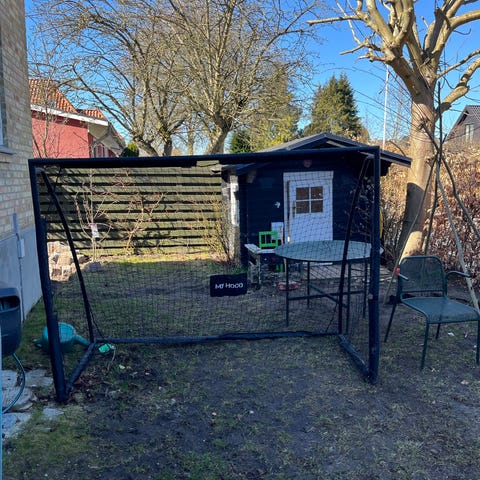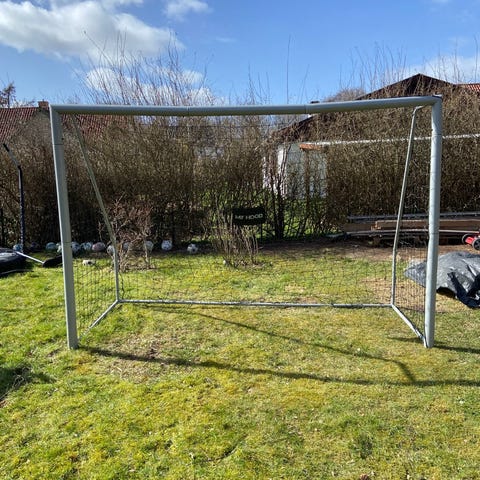 Helt nyt fodboldmål. Vi købte to og bruger kun det ene, så det andet har bare stået i kassen.