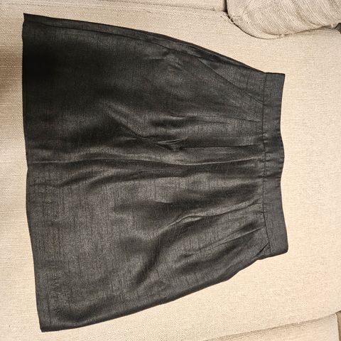 H&M shorts til dame i sort polyester, størrelse 40. Materialet er 100 % polyester. Har lommer og en lynlås bagpå.